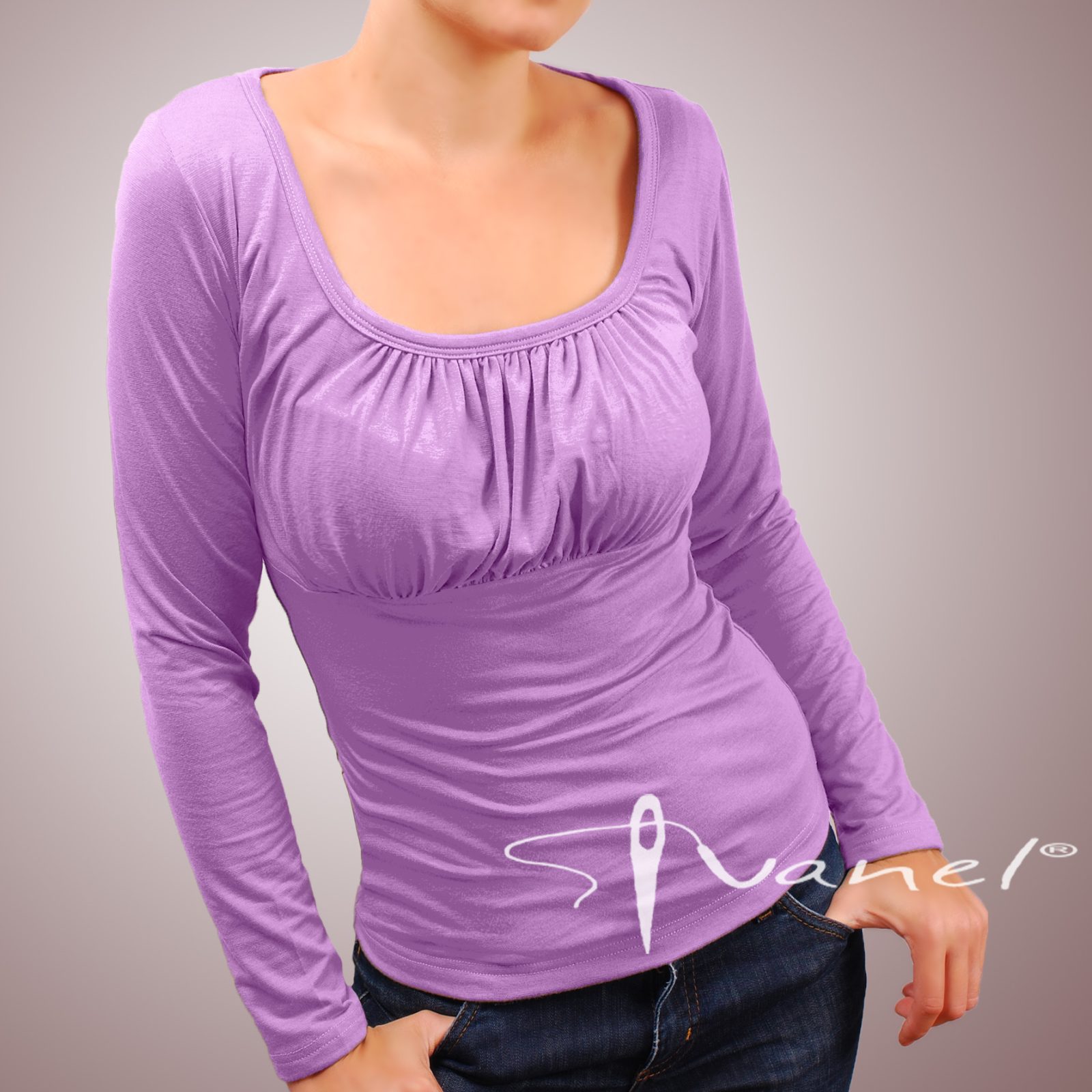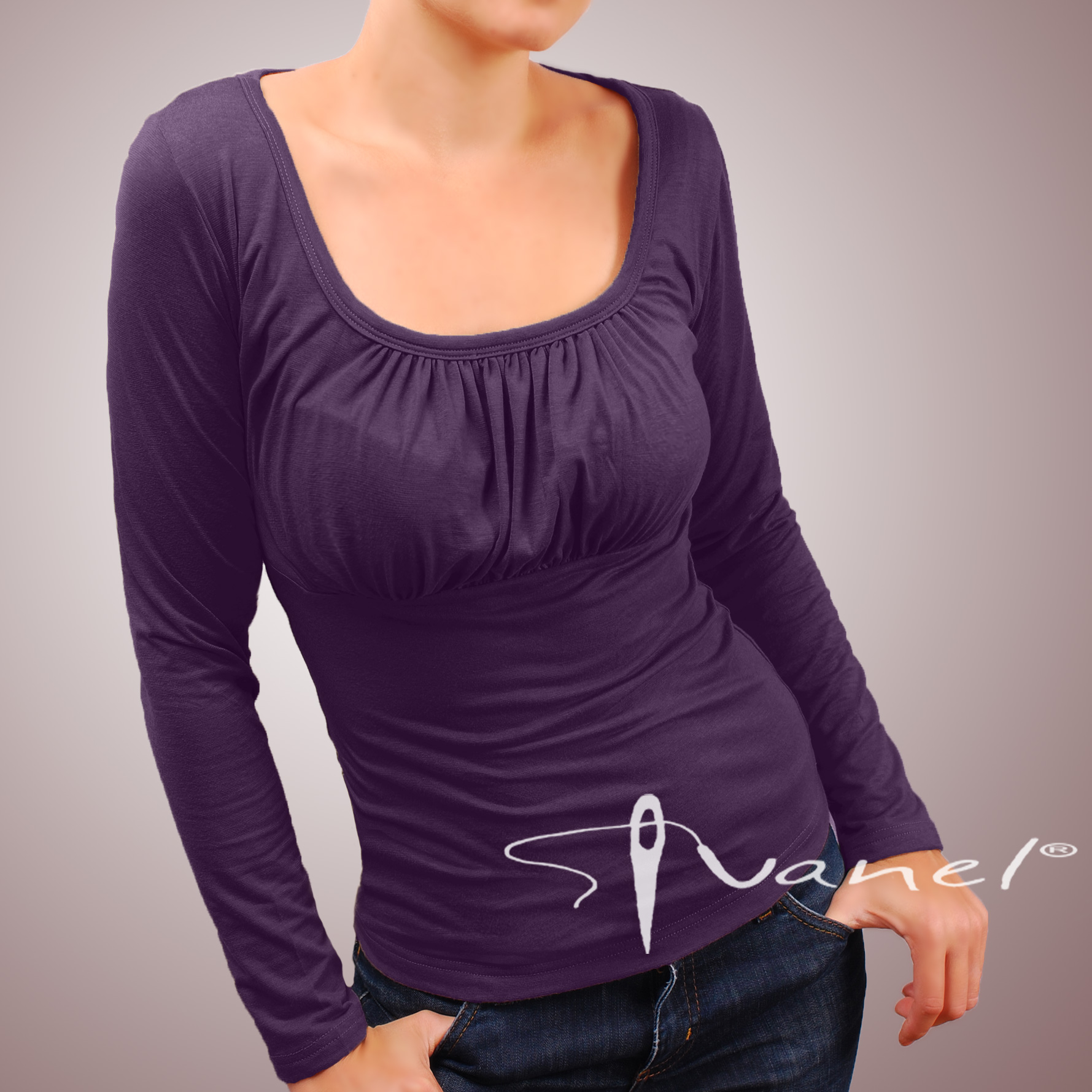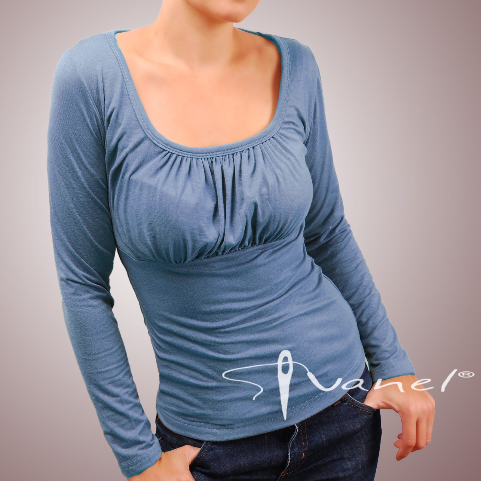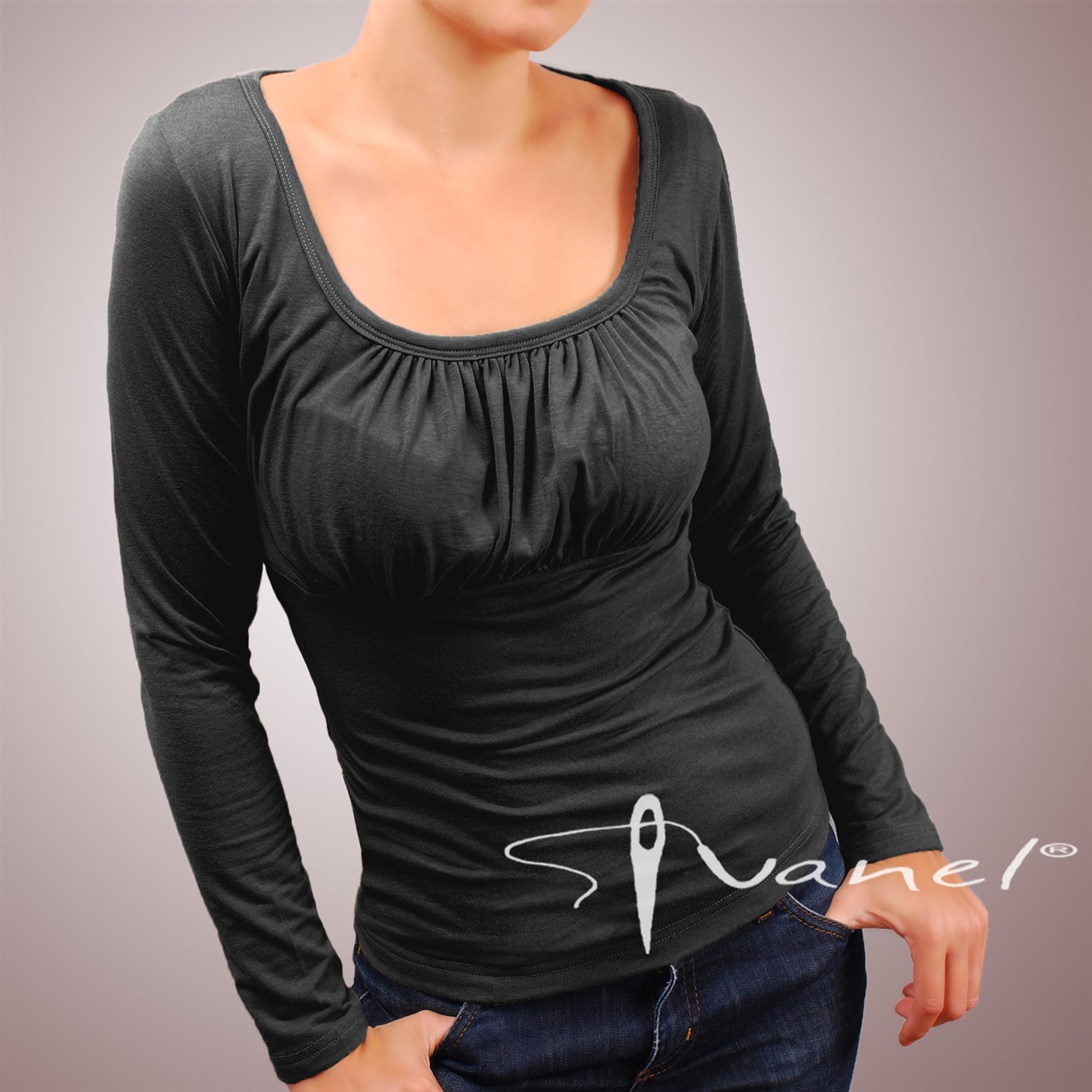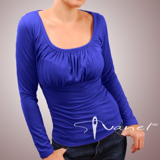 Блуза обло и обемно деколте с дълъг ръкав. Блузата се изпълнява в 28 цвята и размери S, M, L, XL, XXL или зададени от вас мерки
