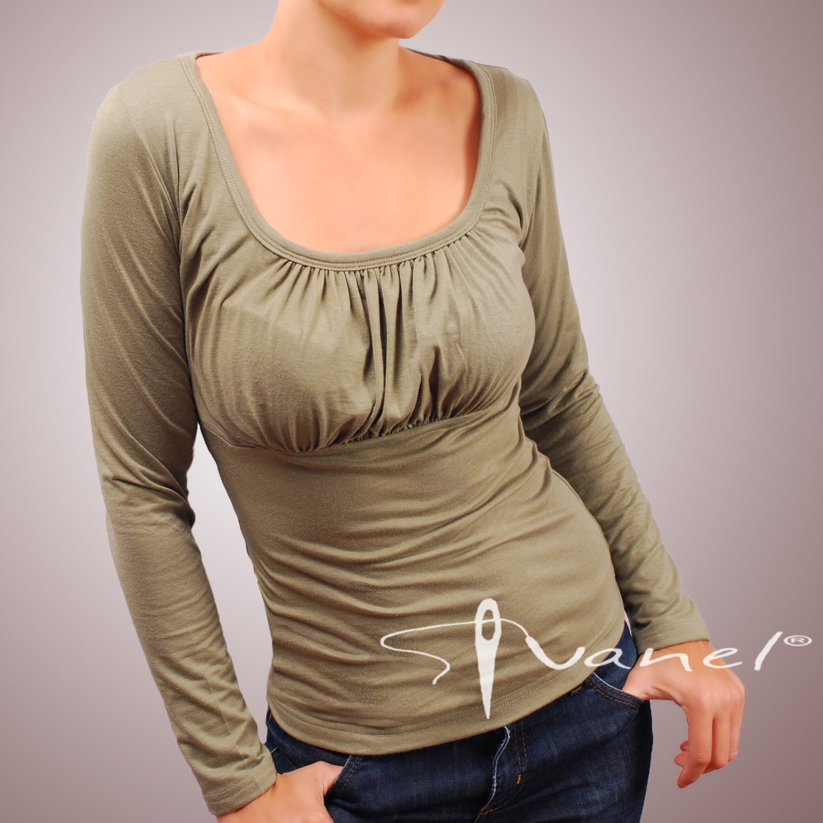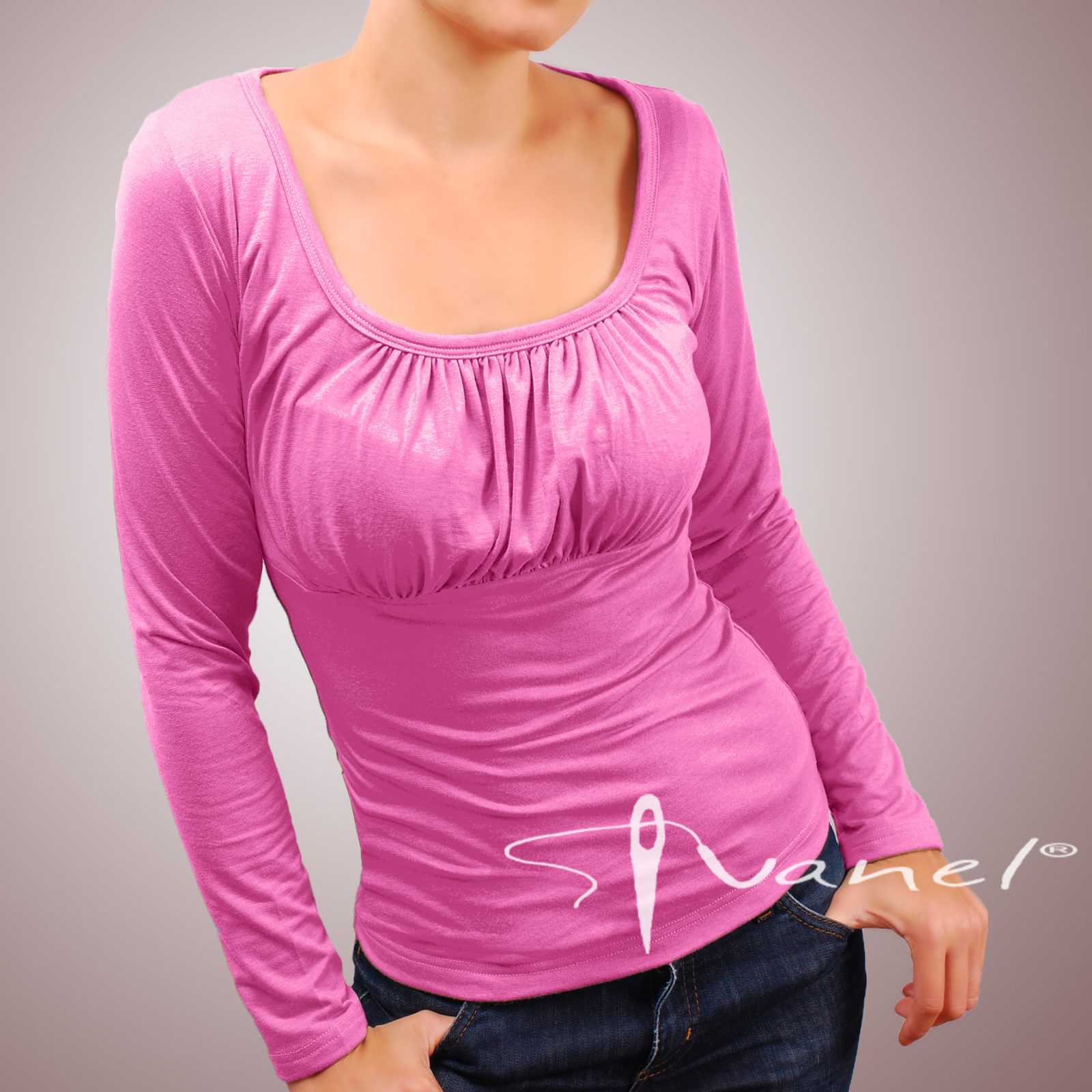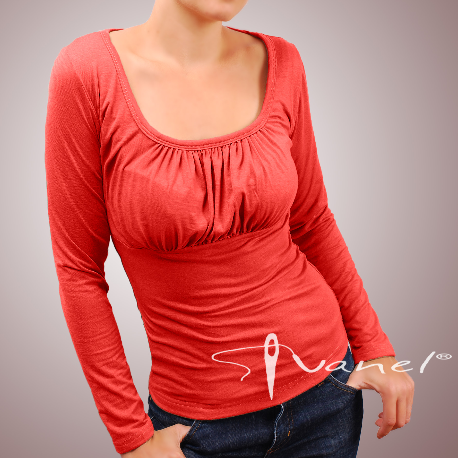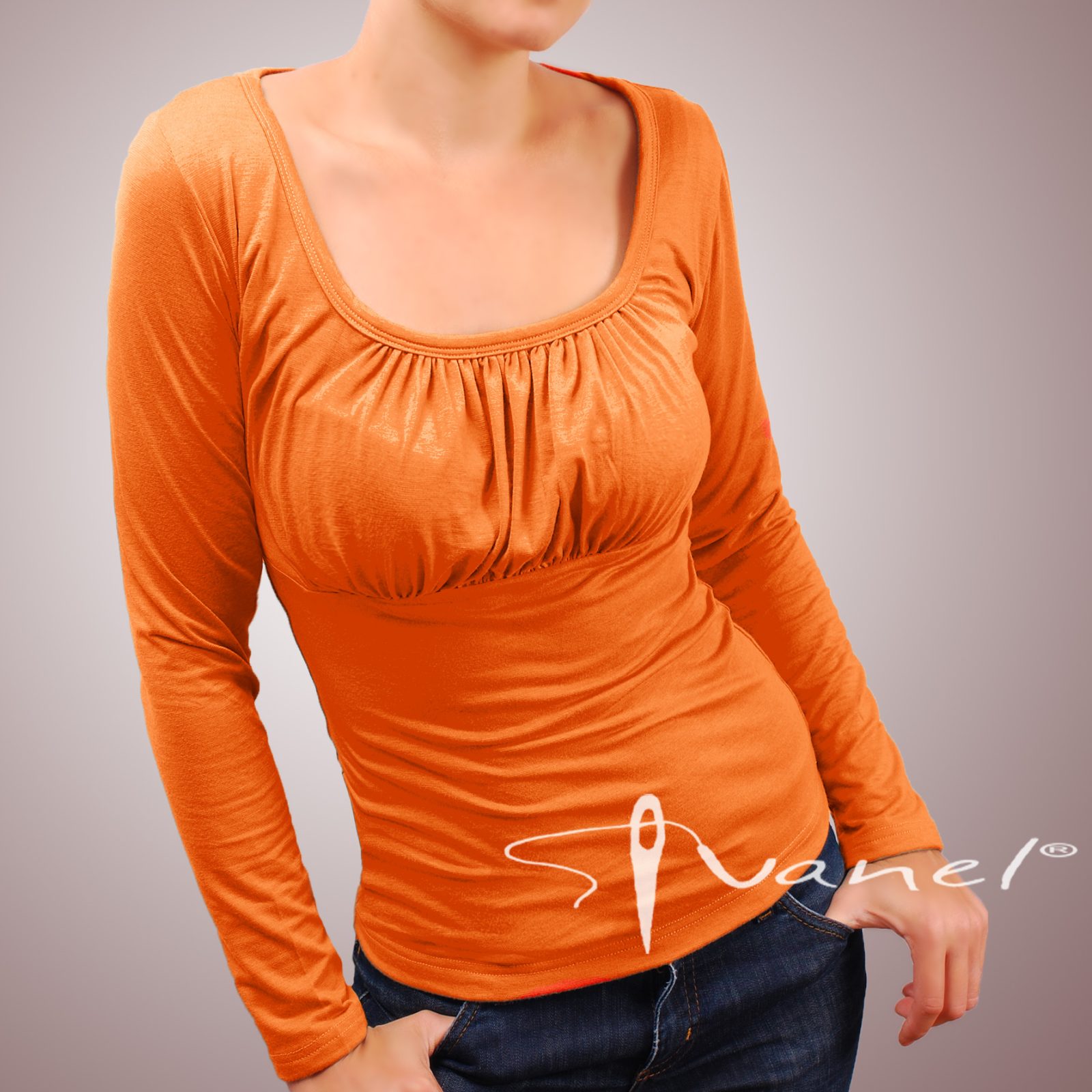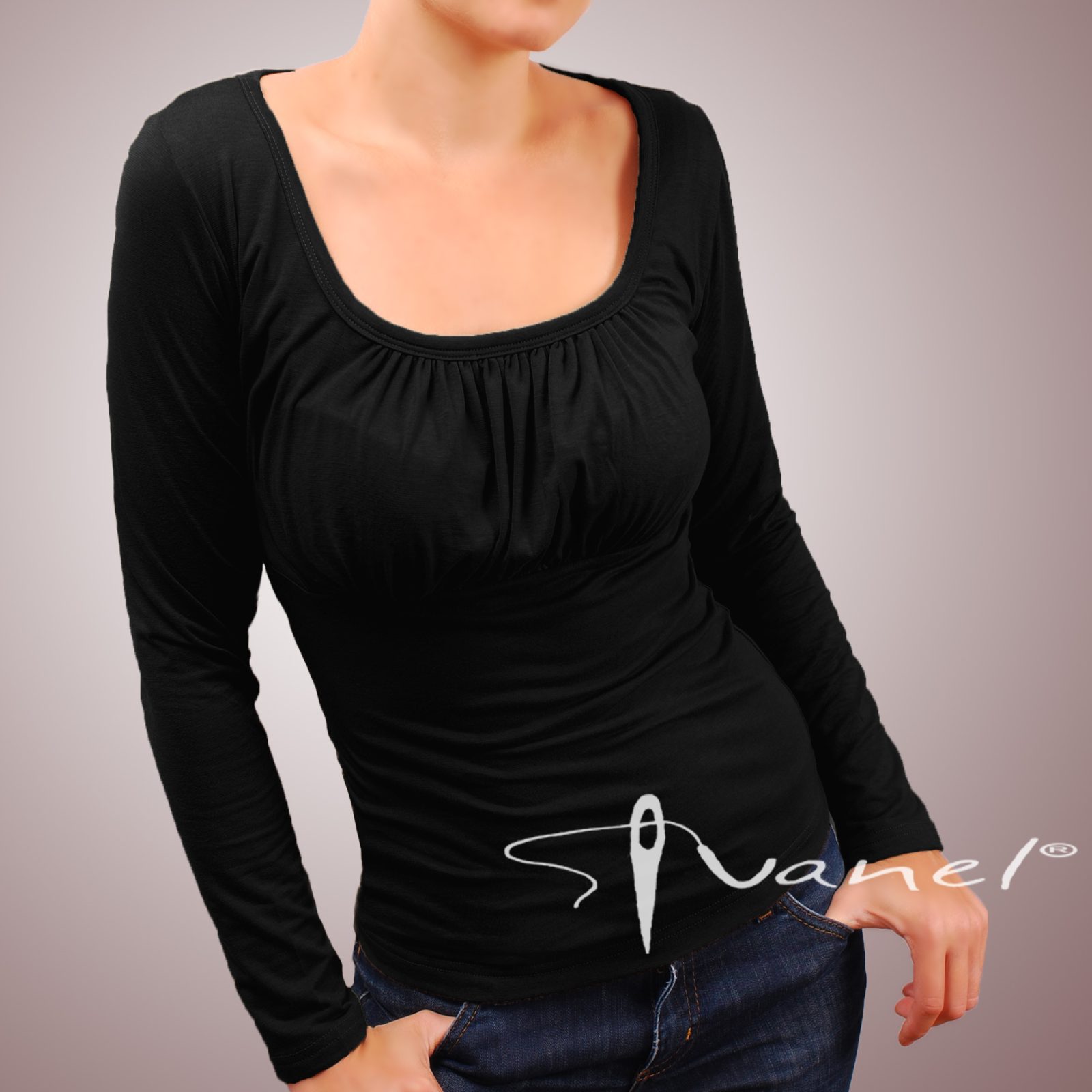 Блуза обло и обемно деколте с дълъг ръкав. Блузата се изпълнява в 28 цвята и размери S, M, L, XL, XXL или зададени от вас мерки