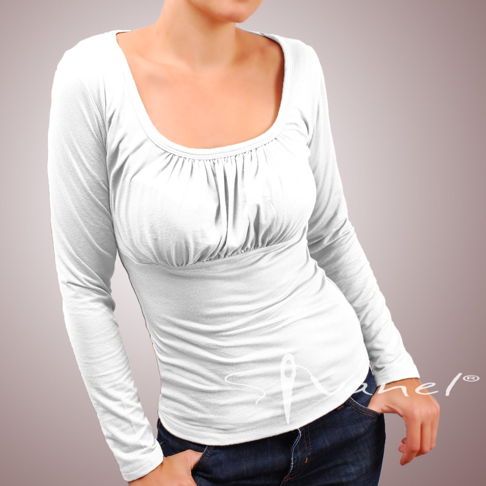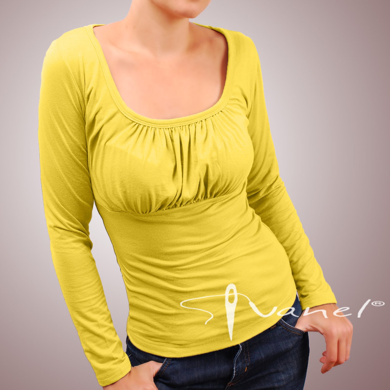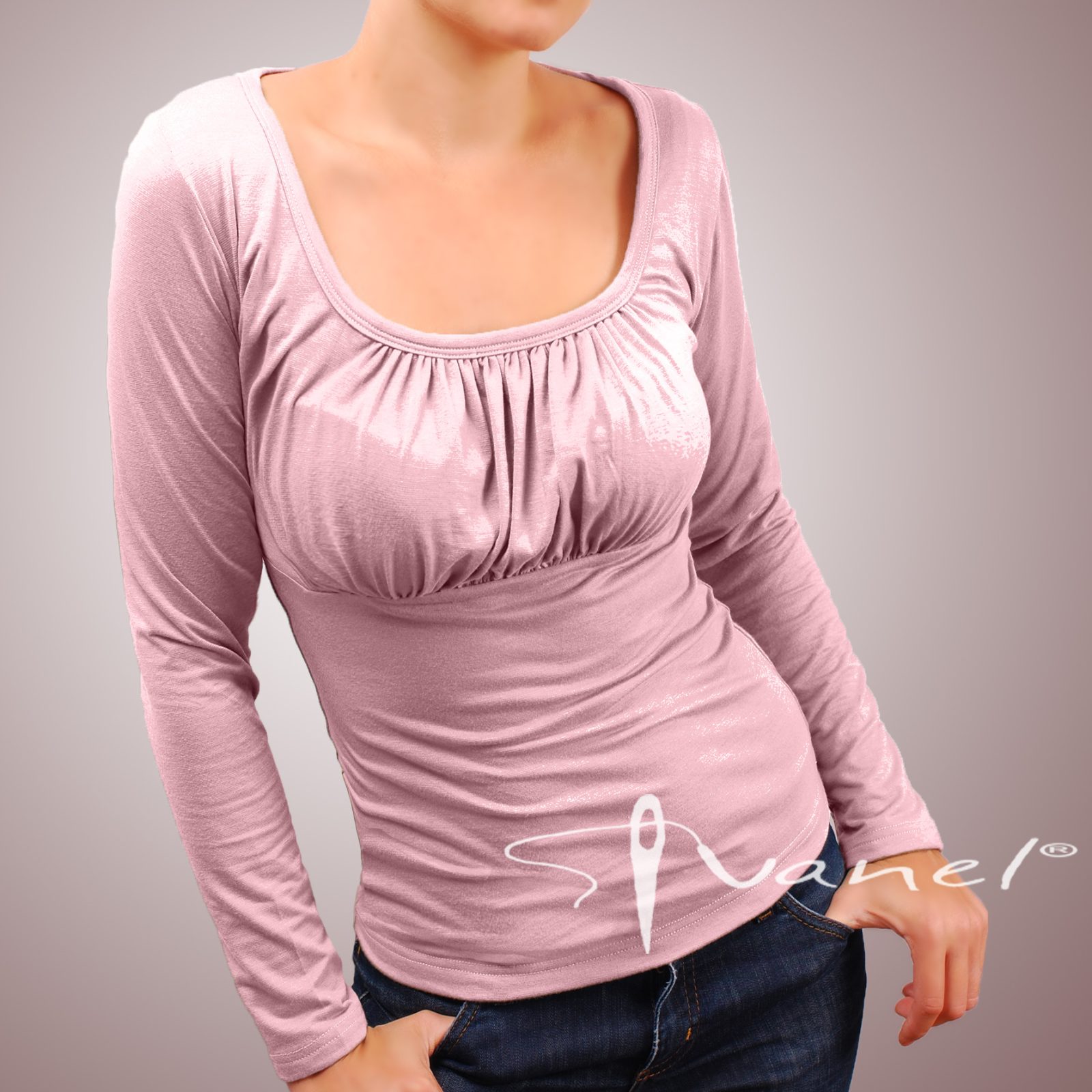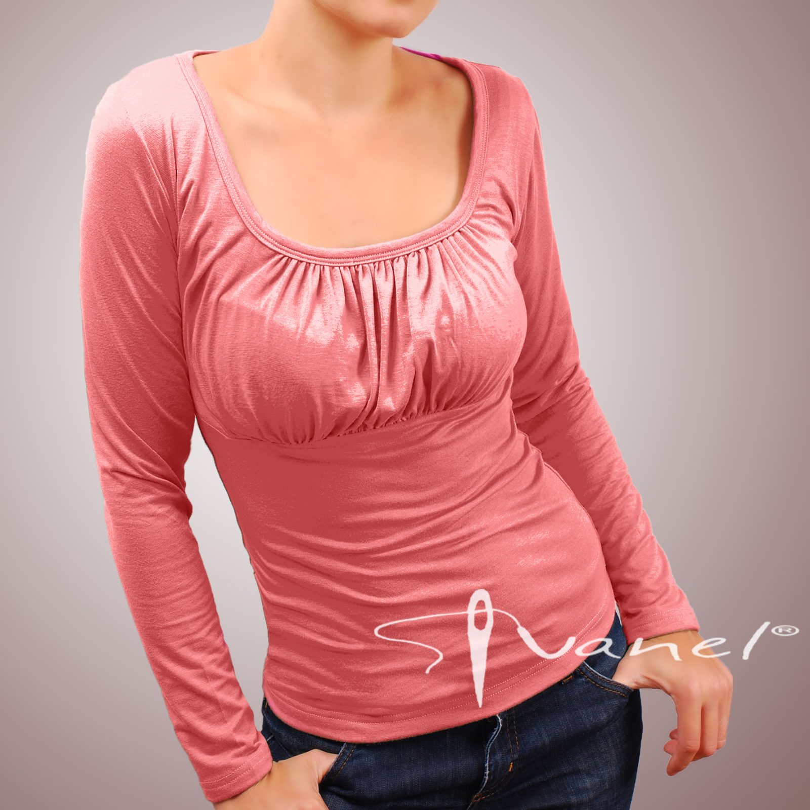 Блуза обло и обемно деколте с дълъг ръкав. Блузата се изпълнява в 28 цвята и размери S, M, L, XL, XXL или зададени от вас мерки