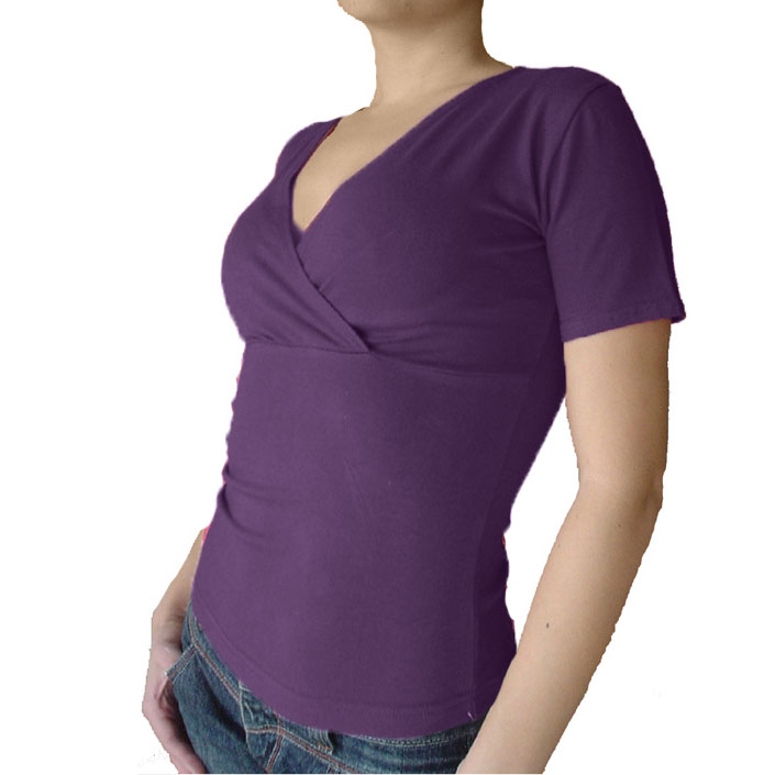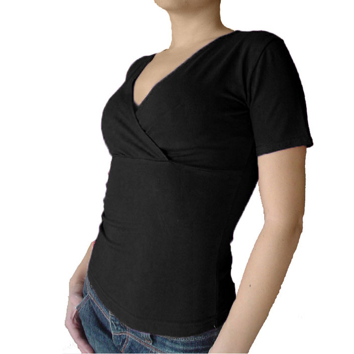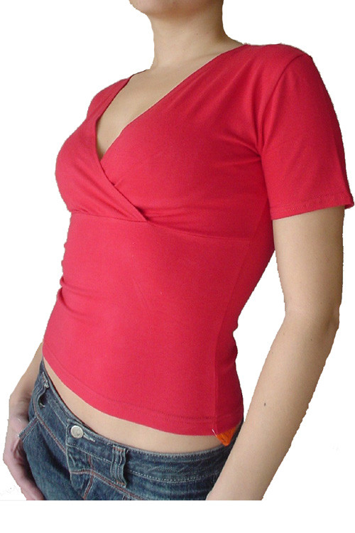 Дамска блуза с деколте прегръдка и къс ръкав.