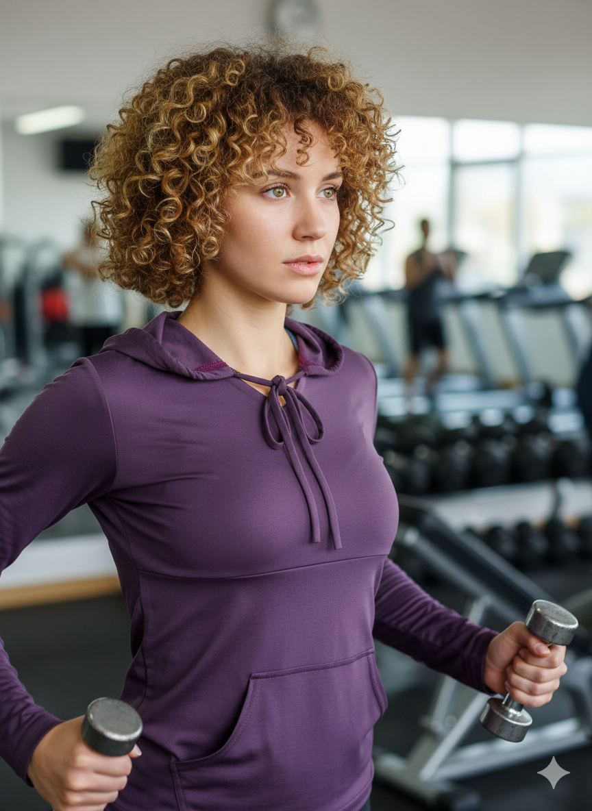 Дамска спортна ежедневна блуза с дълъг ръкав и качулка. Блузата се изпълнява в 28 цвята и размери S, M, L, XL, XXL или зададени от вас мерки