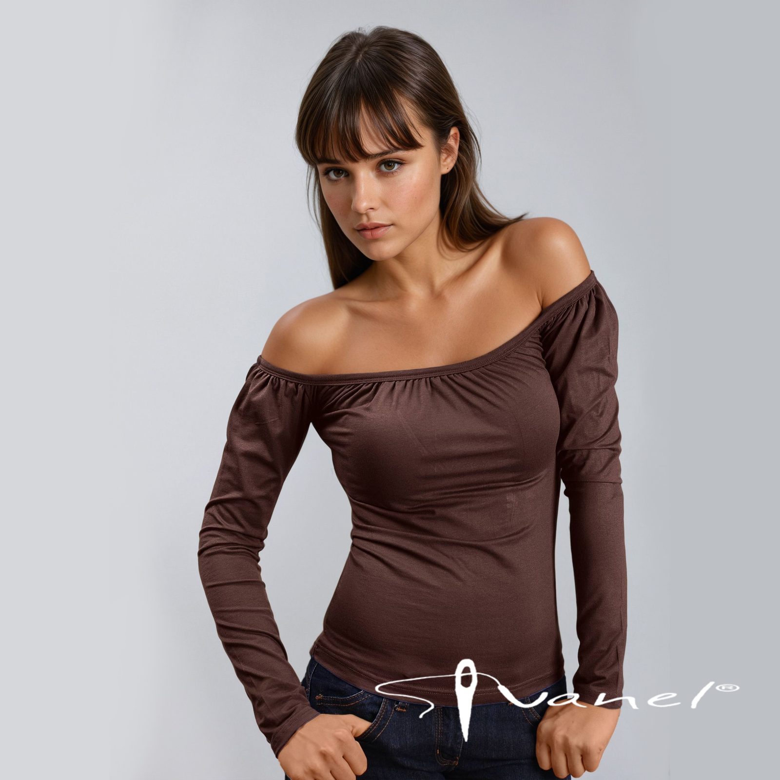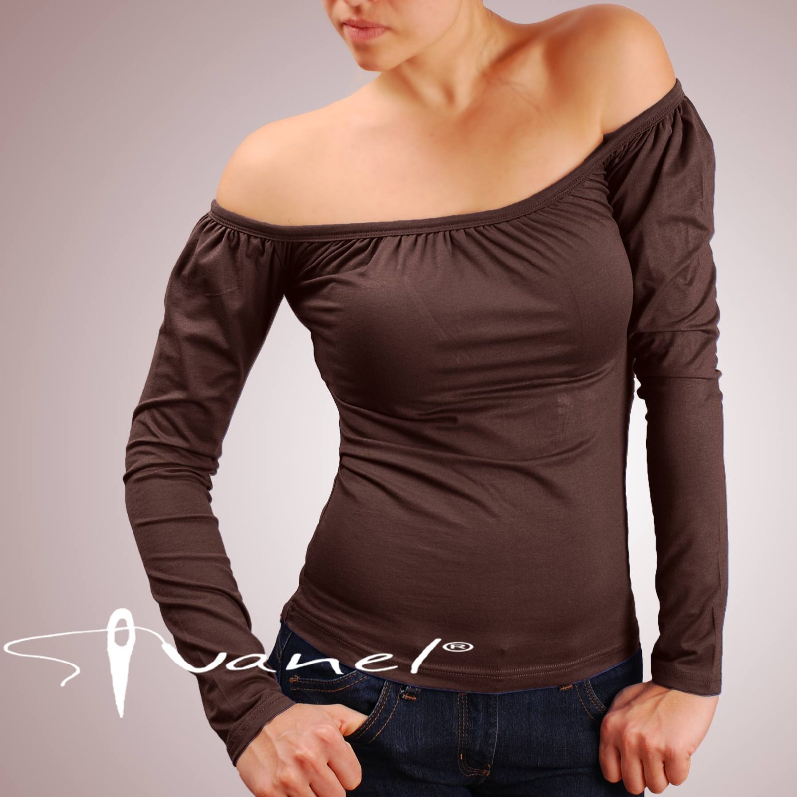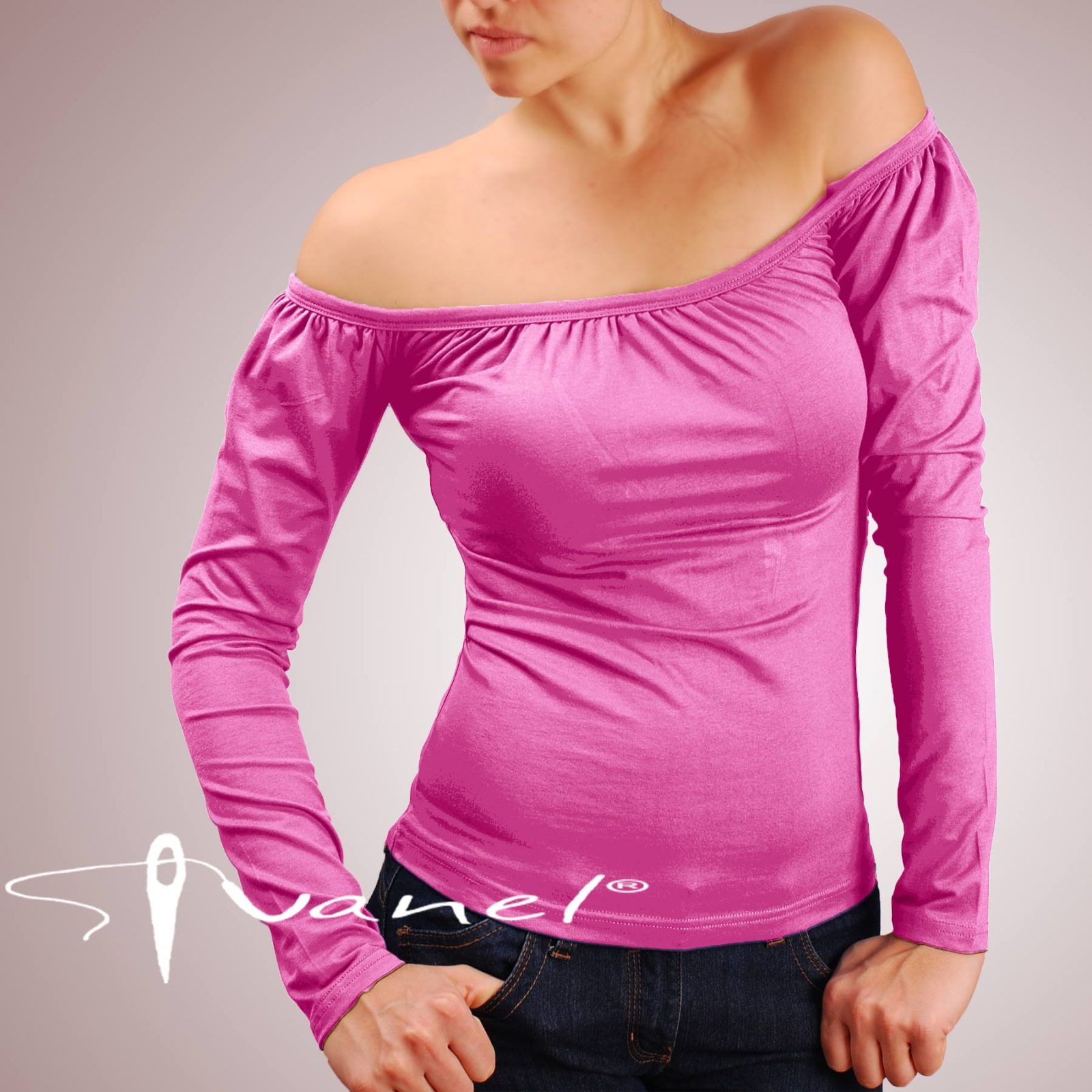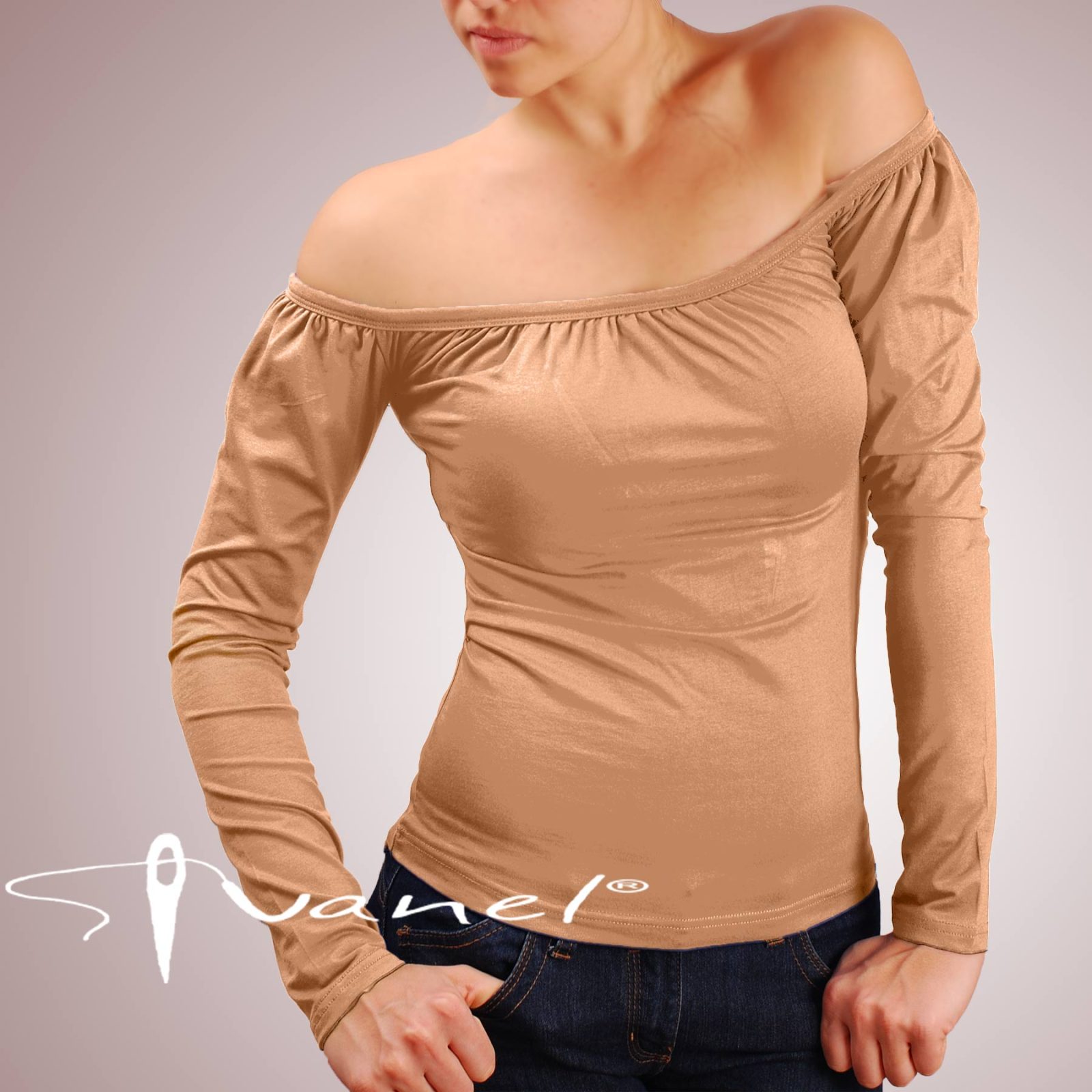 Блуза с набрано бие, голи рамене и дълъг ръкав. Блузата се изпълнява в 28 цвята и размери S, M, L, XL, XXL или зададени от вас мерки