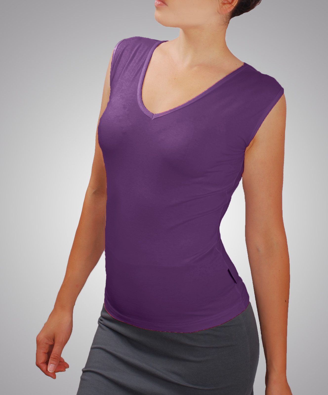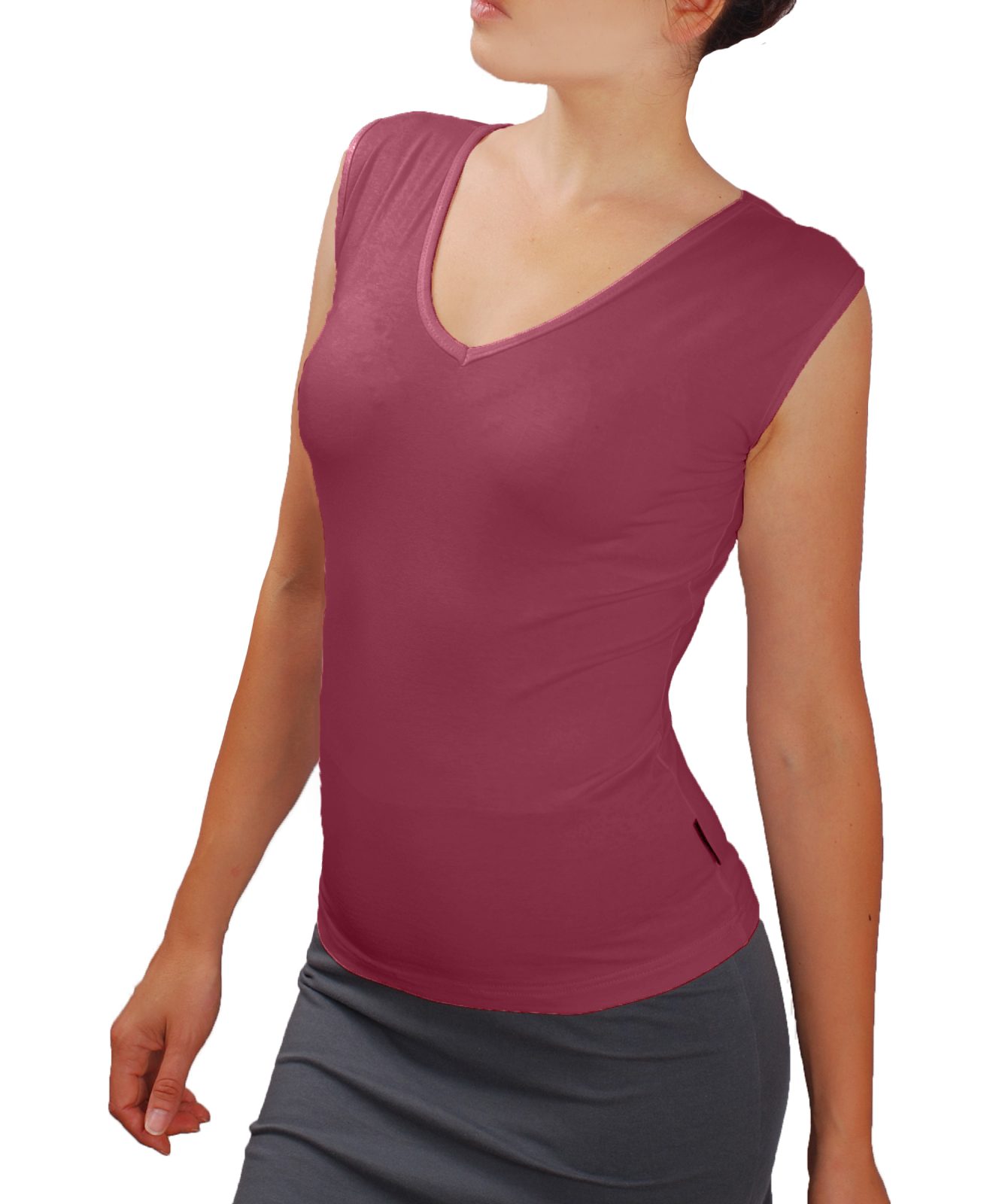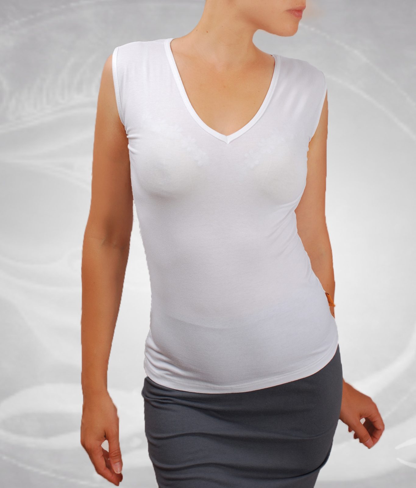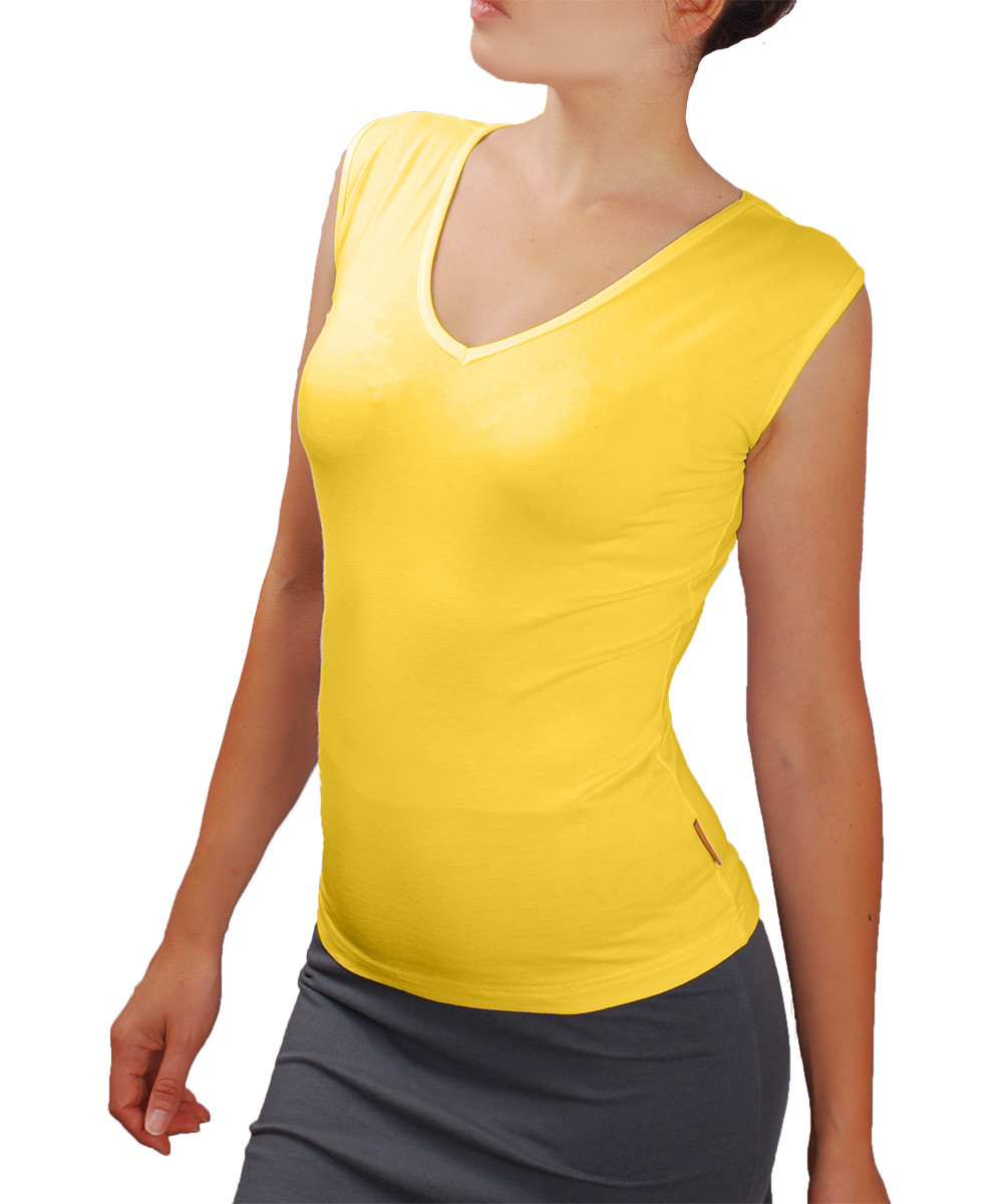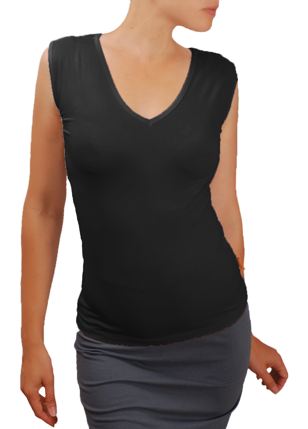 Класическа дамска блуза без ръкави и с V шпиц деколте. Блузата е с шпиц деколте и се изпълнява в 28 цвята и размери S, M, L, XL, XXL или зададени от вас мерки